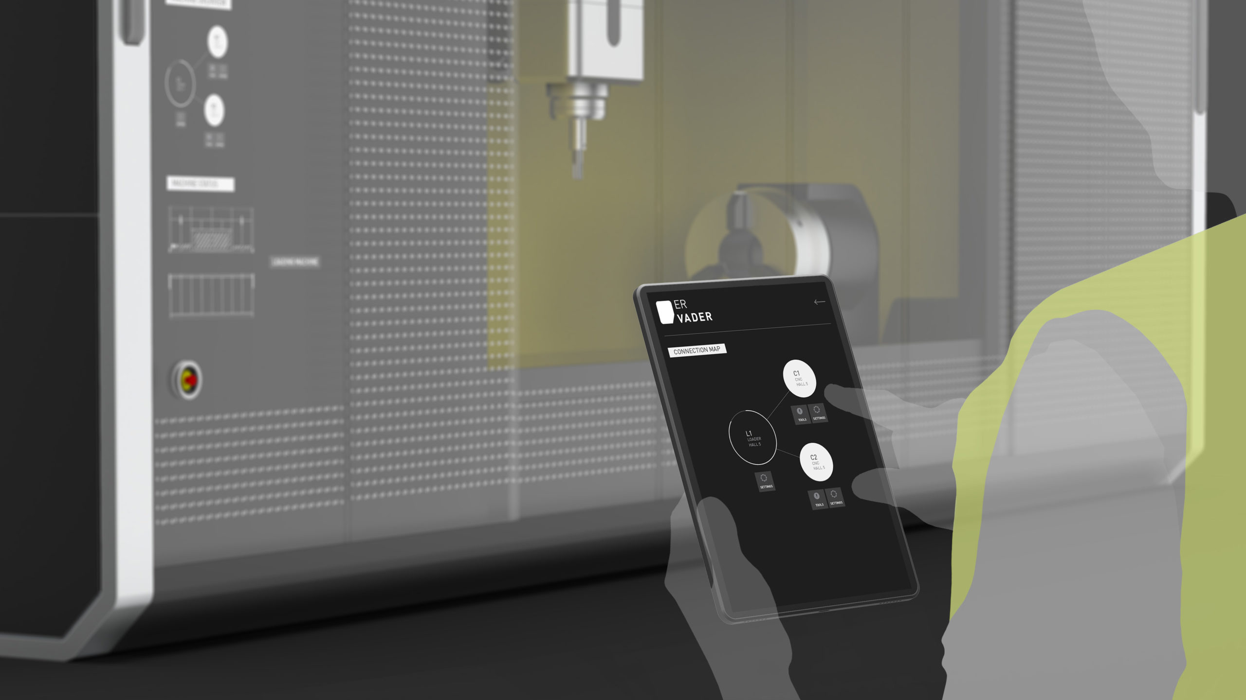 Each VADER module can be operated directly at the front of the machine. Here, the large projection surfaces on the safety glass ensure a clear, user-oriented experience. The status of each machine is thus clearly visible from a distance and can be controlled and monitored from any location by additional “second screens”, such as tablets.