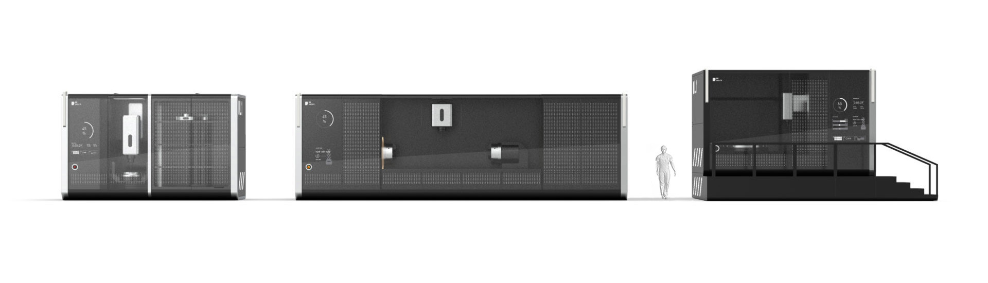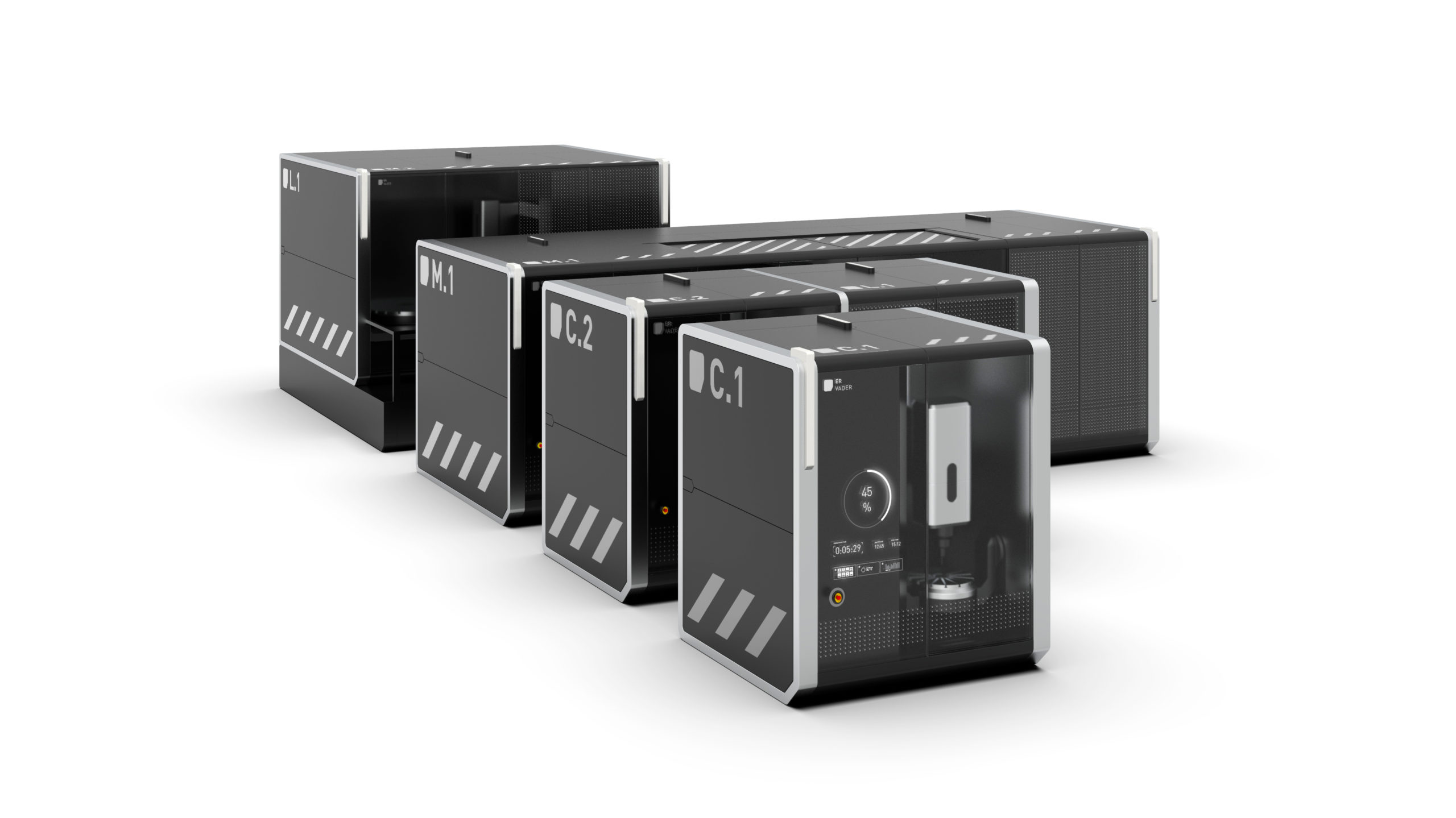 VADER stands for a new generation of industrial machines with modular design that is not only practical, it also sets new visual standards as a clever platform. This platform is based on a grid system on which standardized elements can be planned and assembled to suit the situation. This not only saves costs, it also meets the requirements of the new hyper-personalized services which are necessary in today’s market.